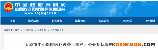 日前,中國政府采購網(wǎng)發(fā)布了一則《太原市中心醫(yī)院醫(yī)療設(shè)備(國產(chǎn))公開招標(biāo)采購公開招標(biāo)公告》(以下簡稱《公告》)。