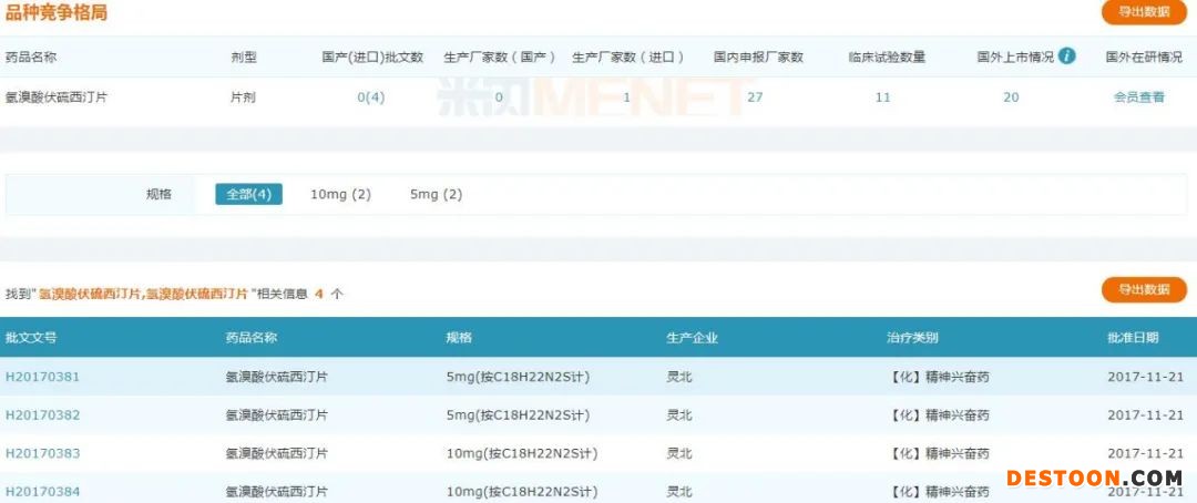 9月23日訊 9月22日,CDE官網(wǎng)顯示,成都康弘藥業(yè)的氫溴酸伏硫西汀片仿制4類上市申請獲得受理。米內(nèi)網(wǎng)數(shù)據(jù)顯示,2019年中國公立醫(yī)療機(jī)構(gòu)終端伏硫西汀片劑銷售額3000余萬元,生產(chǎn)企業(yè)僅有靈北一家。在此之前,該產(chǎn)品揚(yáng)子江以仿制3類、正大天晴藥業(yè)集團(tuán)和成都倍特藥業(yè)以仿制4類提交上市申請,在審評審批中(在藥審中心)。