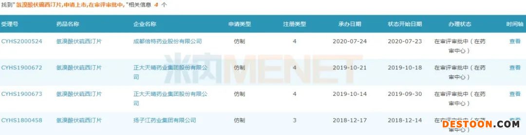 在此之前,該產(chǎn)品揚(yáng)子江以仿制3類、正大天晴藥業(yè)集團(tuán)和成都倍特藥業(yè)以仿制4類提交上市申請?jiān)趯徳u審批中(在藥審中心)。從承辦日期來看,揚(yáng)子江的時間最早。