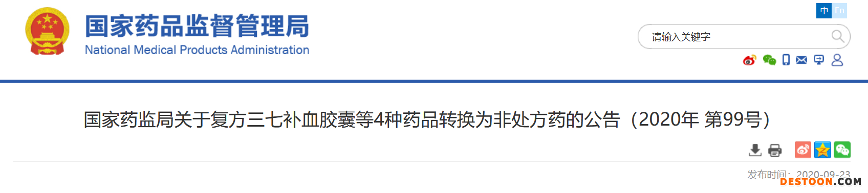 9月24日訊 9月23日,國家藥監(jiān)局發(fā)布關(guān)于復(fù)方三七補(bǔ)血膠囊等4種藥品轉(zhuǎn)換為非處方藥的公告: