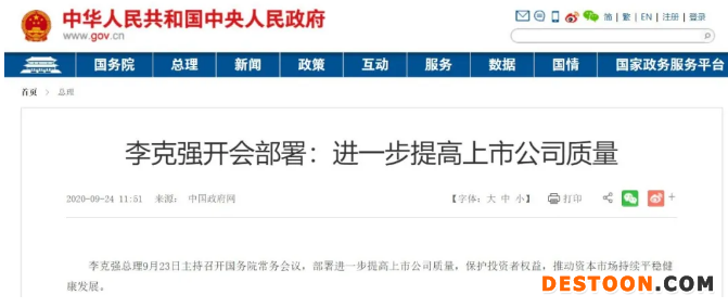 9月25日訊 提高上市公司質(zhì)量,對(duì)于促進(jìn)資本市場(chǎng)健康發(fā)展和拉動(dòng)實(shí)體產(chǎn)業(yè)轉(zhuǎn)型升級(jí)至關(guān)重要。9月23日,國(guó)務(wù)院常務(wù)會(huì)議召開(kāi),針對(duì)進(jìn)一步提高上市公司質(zhì)量工作進(jìn)行部署,旨在保護(hù)投資者權(quán)益,推動(dòng)資本市場(chǎng)持續(xù)平穩(wěn)健康發(fā)展。