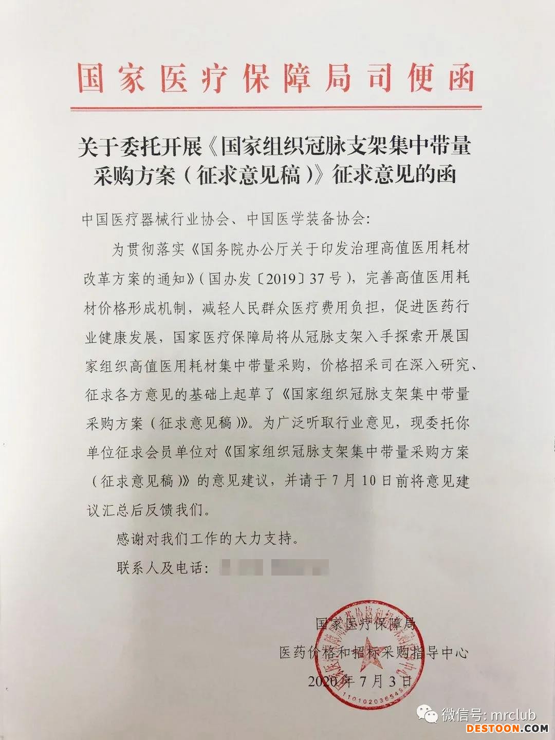 今年 7 月 3 日,一份國(guó)家醫(yī)保局的“關(guān)于委托開展《國(guó)家組織冠脈支架集中帶量采購(gòu)方案(征求意見稿)》征求意見的函”在業(yè)界流傳,從內(nèi)容來(lái)看,國(guó)家醫(yī)保局將從冠脈支架入手探索開展國(guó)家組織高值醫(yī)用耗材集中帶量采購(gòu),基于此,國(guó)家醫(yī)保局價(jià)格招采司在深入研究、征求多方意見的基礎(chǔ)上起草了《國(guó)家組織冠脈支架集中帶量采購(gòu)方案(征求意見稿)》,特委托中國(guó)醫(yī)療器械行業(yè)協(xié)會(huì)、中國(guó)醫(yī)學(xué)裝備協(xié)會(huì)征求會(huì)員單位的意見。