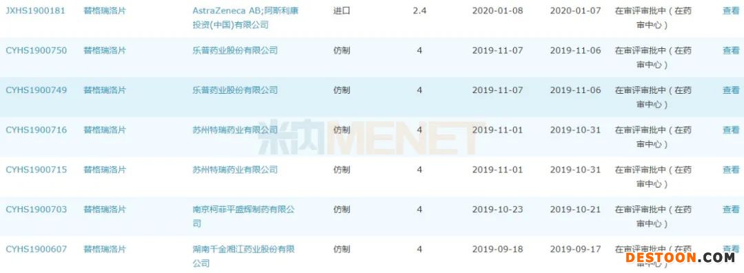 9月27日訊 9月24日,CDE官網(wǎng)顯示,成都倍特藥業(yè)的替格瑞洛片以仿制4類申請(qǐng)上市獲得受理。米內(nèi)網(wǎng)數(shù)據(jù)顯示,2019年在中國(guó)公立醫(yī)療機(jī)構(gòu)終端替格瑞洛片銷售額超過(guò)15億元,其中,阿斯利康的市場(chǎng)份額占比超過(guò)95%。國(guó)內(nèi)已有石藥集團(tuán)歐意藥業(yè)、南京正大天晴、浙江海正藥業(yè)、揚(yáng)子江藥業(yè)集團(tuán)廣州海瑞藥業(yè)等8家仿制藥企業(yè),且均已過(guò)評(píng)。此外,還有四川科倫藥業(yè)、廣東東陽(yáng)光藥業(yè)、山東羅欣藥業(yè)等超過(guò)20家企業(yè)申報(bào)上市在審評(píng)審批中(在藥審中心)。