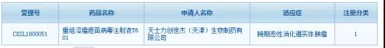 重組溶瘤痘苗病毒注射液T601是由天士力旗下創(chuàng)世杰公司在中國開發(fā)的具有完全自主知識產(chǎn)權(quán)的治療用生物制品1類新藥,是一種全新開發(fā)設計的溶瘤病毒產(chǎn)品,適應癥為晚期惡性消化道實體腫瘤。
