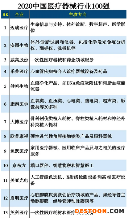 日前,eNet研究院與互聯(lián)網(wǎng)周刊等聯(lián)合發(fā)布發(fā)布了《2020中國醫(yī)療器械行業(yè)100強(qiáng)》榜單。