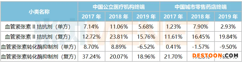 表1:作用于腎素-血管緊張素系統(tǒng)的藥物各小類增速情況