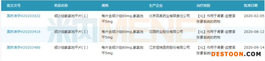 圖2:目前已過評(píng)的纈沙坦氫氯噻嗪相關(guān)產(chǎn)品情況