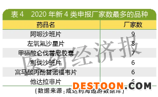 化學(xué)藥新注冊(cè)分類新4類申報(bào)最多的為阿哌沙班片報(bào)產(chǎn),同類競(jìng)品利伐沙班片也有5家生產(chǎn)廠家報(bào)產(chǎn)。