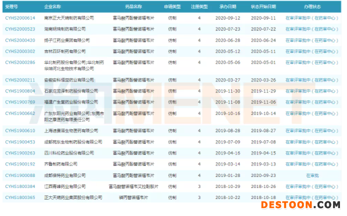 米內(nèi)網(wǎng)數(shù)據(jù)顯示,目前國(guó)內(nèi)有16家藥企以仿制3類或仿制4類提交富馬酸丙酚替諾福韋片上市申請(qǐng)。成都倍特藥業(yè)該產(chǎn)品率先于9月23日進(jìn)入行政審批階段,10月19日順利成為國(guó)內(nèi)首仿。