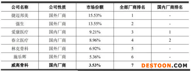 2019年中國骨科植入市場生產(chǎn)企業(yè)市場份額排名