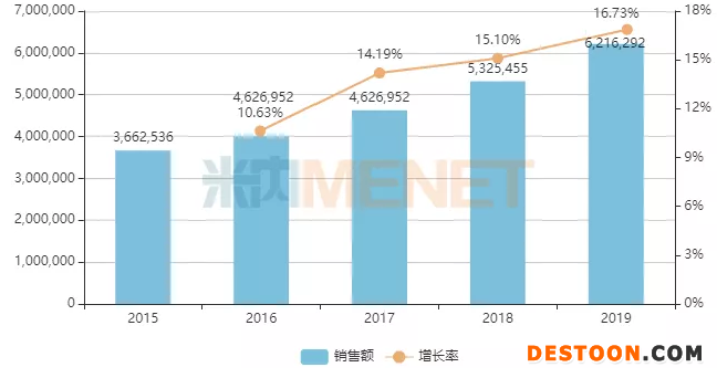 作為一項新納入的考核標準,抗腫瘤藥物備受重視其實并不只是政策因素影響,市場情況也顯示近年國內(nèi)抗腫瘤藥市場保持頗高的增速。米內(nèi)網(wǎng)數(shù)據(jù)顯示,最近幾年在中國城市公立醫(yī)院、縣級公立醫(yī)院、城市社區(qū)中心及鄉(xiāng)鎮(zhèn)衛(wèi)生院(簡稱中國公立醫(yī)療機構(gòu))終端抗腫瘤藥的銷售規(guī)??焖偕蠞q,2016-2019年增速分別為12.44%、16.36%、19.10%、21.30%,2019年漲至961億元。盡管受到臨床用藥推薦“能口服不注射”原則影響,抗腫瘤用藥領(lǐng)域仍然是注射劑市場占較大(市場占比達64.74%),但增速稍稍低于水平線,2016-2019年的增速均保持在10%以上,市場潛力依然可觀。