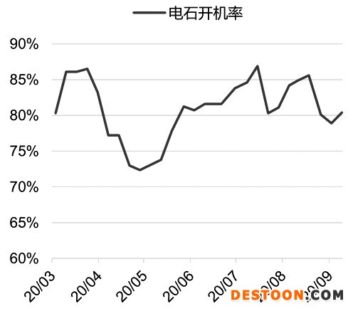 一般而言,PVC裝置主要集中在7—8月檢修,一方面是因為夏季高溫和雨水影響裝置穩(wěn)定性;另一方面是因為夏季高溫影響施工,需求呈現(xiàn)淡季。今年受疫情影響,前期部分裝置已提前檢修,前期沒檢修的裝置安排在9—10月檢修,按照歷史季節(jié)性規(guī)律,10月下旬秋季檢修結(jié)束后,存量裝置開工將有所回升。