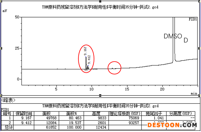 1、鹽酸鹽類物料采用DMSO作溶劑時,應避免加熱;在加熱條件下,DMSO會與鹽酸鹽發(fā)生反應產(chǎn)生雜質(zhì);頂空加熱至80℃左右即會發(fā)生反應產(chǎn)生雜質(zhì);