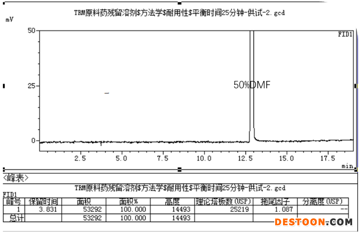 圖5 更換50%DMF為稀釋劑的鹽酸鹽品種1的GC色譜圖