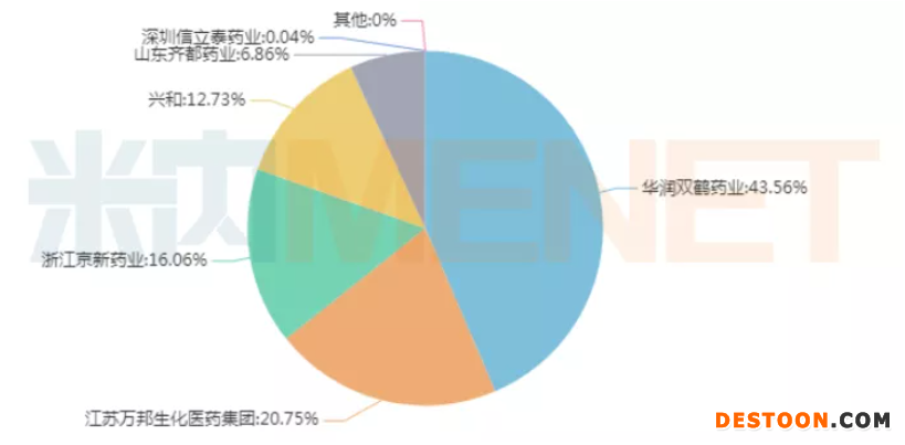米內網數據顯示,2019年中國城市公立醫(yī)院、縣級公立醫(yī)院、城市社區(qū)中心及鄉(xiāng)鎮(zhèn)衛(wèi)生院(簡稱中國公立醫(yī)療機構)終端匹伐他汀銷售額超過15億元,同比增長47.50%。其中,華潤雙鶴占據43.56%的市場份額,萬邦醫(yī)藥占比20.75%,京新藥業(yè)占比16.06%。