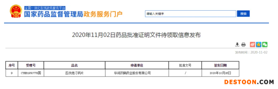 11月3日訊 11月2日,國家藥監(jiān)局官網顯示,華潤雙鶴藥業(yè)的匹伐他汀鈣片通過仿制藥一致性評價。米內網數據顯示,2019年中國公立醫(yī)療機構終端匹伐他汀銷售額超過15億元,同比增長47.50%。