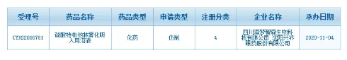 11月5日訊 11月4日,CDE官網(wǎng)顯示,四川海夢智森生物科技|沈陽興齊眼藥的硫酸特布他林霧化吸入用溶液仿制4類上市申請獲得受理。米內(nèi)網(wǎng)數(shù)據(jù)顯示,近年在中國公立醫(yī)療機(jī)構(gòu)終端特布他林吸入劑銷售額均超過10億元,今年上半年銷售額超過4億元,生產(chǎn)企業(yè)僅有阿斯利康。今年4月,四川美大康華康藥業(yè)的硫酸特布他林霧化吸入用溶液首仿獲批。而在此之前,石家莊四藥、健康元海濱藥業(yè)|健康元藥業(yè)集團(tuán)等6家企業(yè)提交仿制4類上市申請?jiān)趯徳u審批中(在藥審中心)。