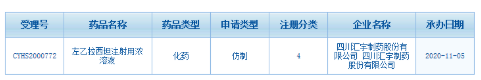 11月6日訊 11月5日,CDE官網(wǎng)顯示,四川匯宇制藥以仿制4類提交的左乙拉西坦注射用濃溶液上市申請(qǐng)獲得CDE承辦受理。2020年至今,四川匯宇制藥已有5個(gè)品種(均為注射劑)以新分類報(bào)產(chǎn),其中普樂(lè)沙福注射液暫無(wú)首仿,四川匯宇制藥獨(dú)家以新分類報(bào)產(chǎn)。