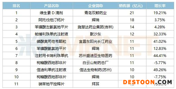 而青島雙鯨藥業(yè)的維生素D滴劑則為唯一一個超過20億的藥品品牌,增長率超過19.21%。