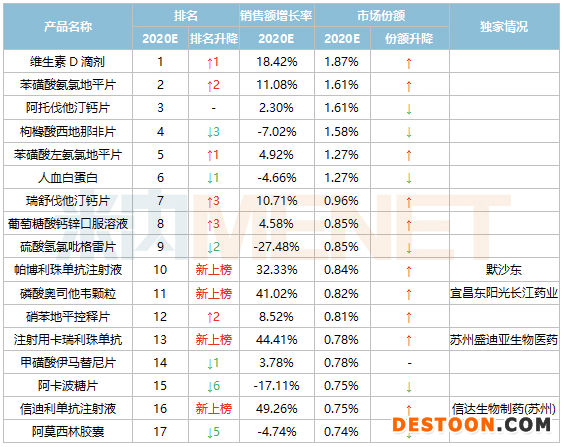 而青島雙鯨藥業(yè)的維生素D滴劑則為唯一一個超過20億的藥品品牌,增長率超過19.21%。