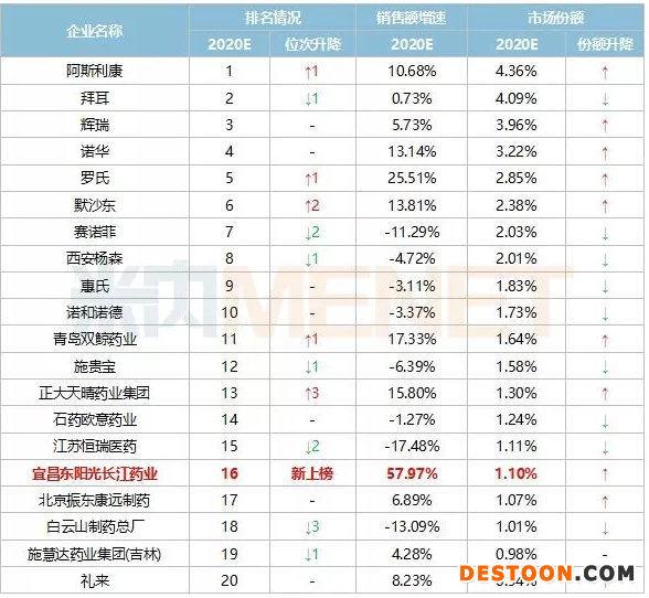 值得注意的是,宜昌東陽長江藥業(yè)為今年新上榜的藥企,增速喜人,達(dá)57.97%。