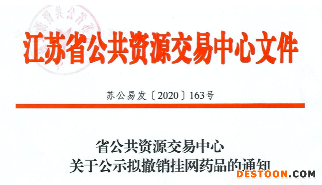 通知顯示,根據(jù)《江蘇省醫(yī)療保障局關于推進藥品陽光采購的實施意見(試行)》《江蘇省醫(yī)療保障局關于公示符合撤網(wǎng)條件藥品的函》的要求,已按相關程序進行了審核與確認,將擬撤銷掛網(wǎng)藥品予以公示。