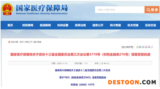 11月12日,國家醫(yī)保局發(fā)布了《關(guān)于政協(xié)十三屆全國委員會第三次會議第3778號(財稅金融類276號)提案答復(fù)的函》(以下簡稱答復(fù))。