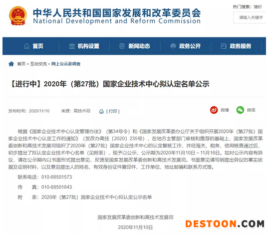 11月17日訊 近日,國家發(fā)展改革委創(chuàng)新和高技術(shù)發(fā)展司發(fā)布公告稱,在地方主管部門審核和推薦的基礎(chǔ)上,組織了2020年(第27批)國家企業(yè)技術(shù)中心的認(rèn)定復(fù)核工作,并經(jīng)海關(guān)、稅務(wù)、信用核查通過后,初步提出了擬認(rèn)定企業(yè)技術(shù)中心名單,于2020年11月10日~11月16日進(jìn)行公示。