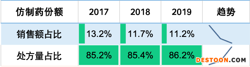 醫(yī)保局在通過(guò)一致性評(píng)價(jià)基礎(chǔ)上,按低價(jià)強(qiáng)制進(jìn)行替代,相對(duì)理論依據(jù)充分,也符合歐美發(fā)達(dá)國(guó)家藥品使用慣例。比如美國(guó)市場(chǎng),仿制藥處方就占到總量的近 9 成,銷(xiāo)售額只有 1 成,節(jié)省了大量的醫(yī)保開(kāi)支。