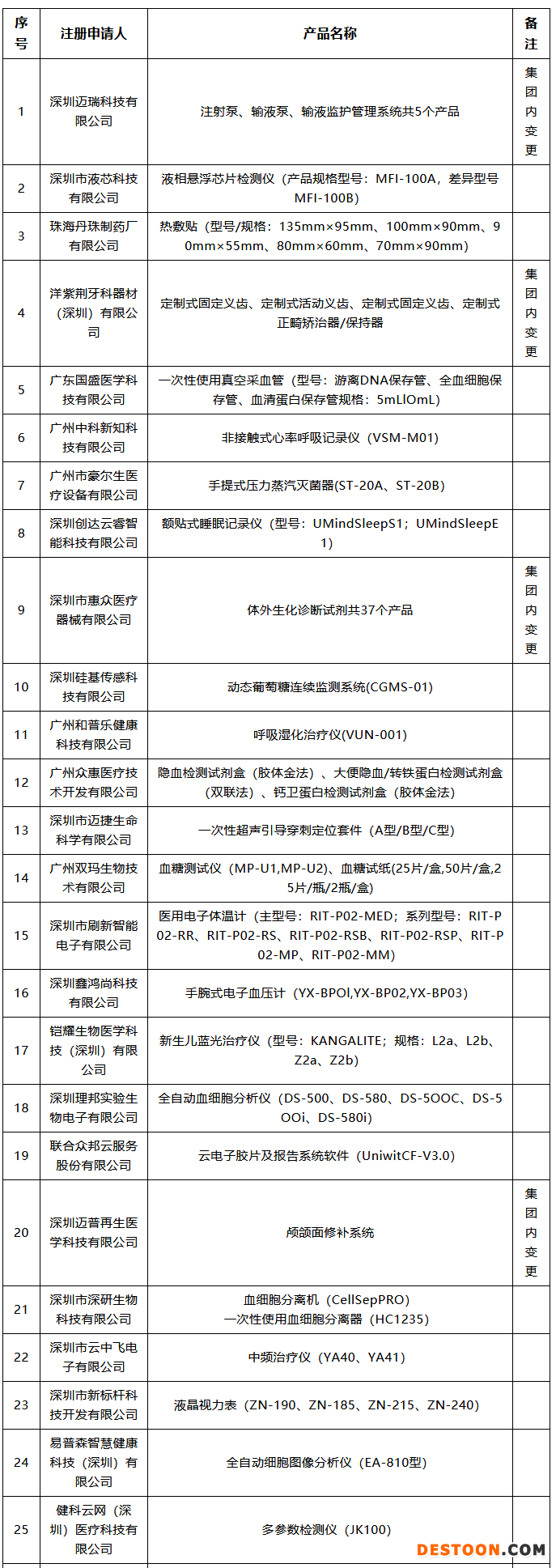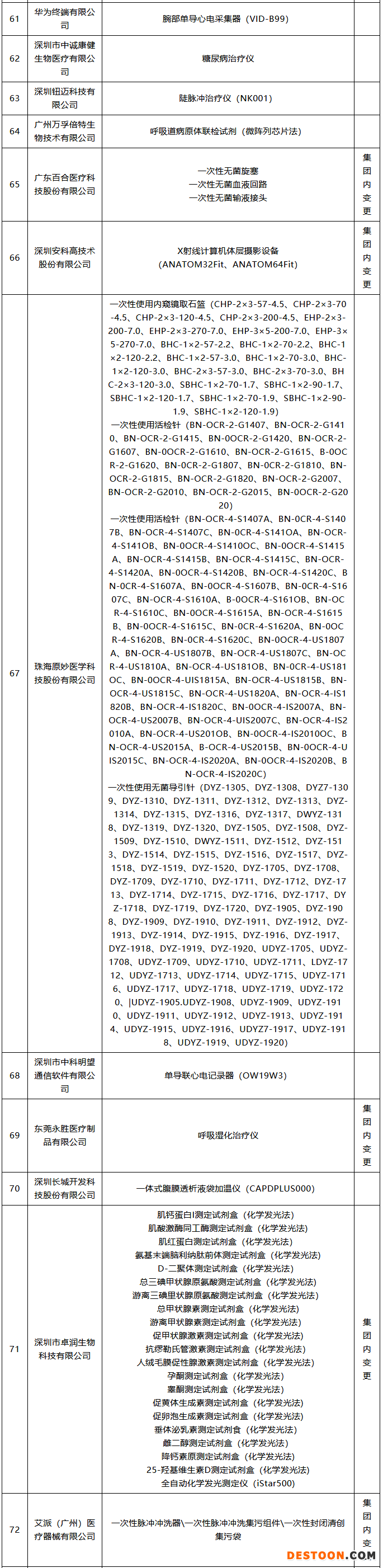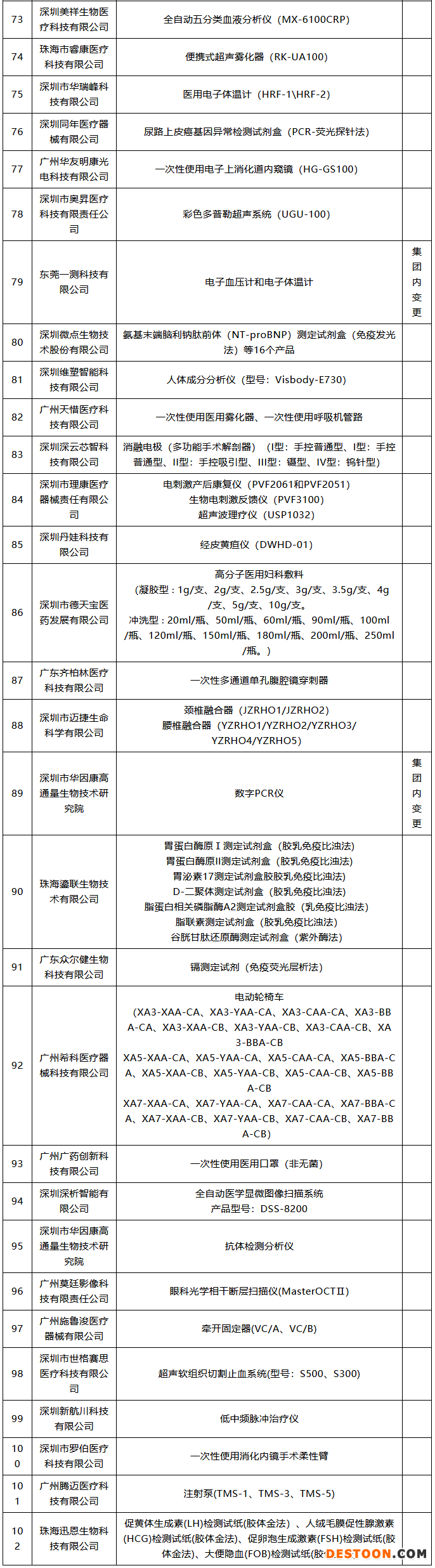 102款獲批器械名單