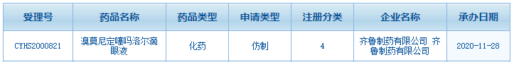 圖1:齊魯制藥申報的溴莫尼定噻嗎洛爾滴眼液