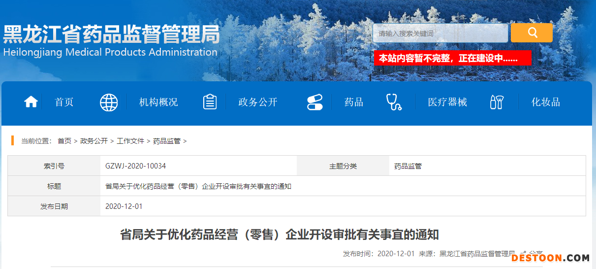 除黑龍江外,目前浙江、遼寧等地都已明確,取消藥店籌建審批。