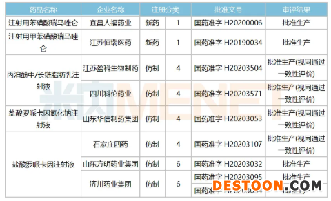 表1:2020至今獲批上市的麻醉劑產(chǎn)品情況