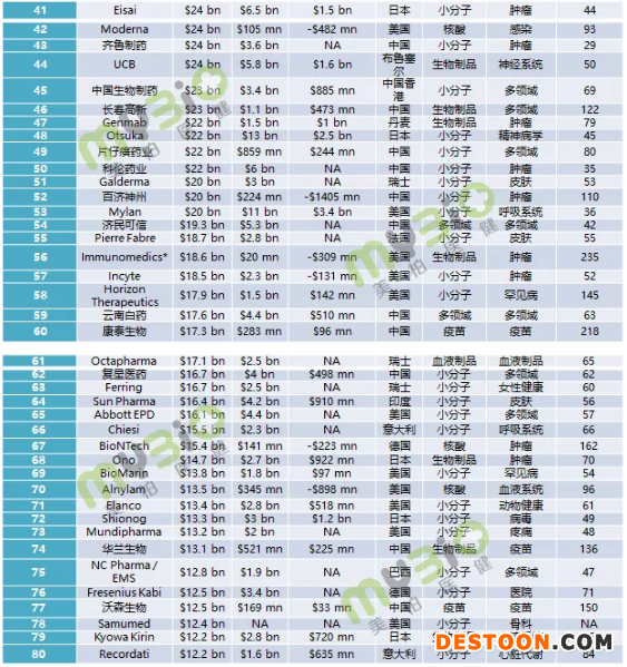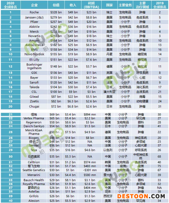 除恒瑞外,揚子江、石藥集團、智飛生物、豪森藥業(yè)、齊魯制藥、中國生物制藥、長春高新、片仔癀藥業(yè)和科倫藥業(yè)位居全球前50名,基本比起去年均有了較為明顯的跨越。