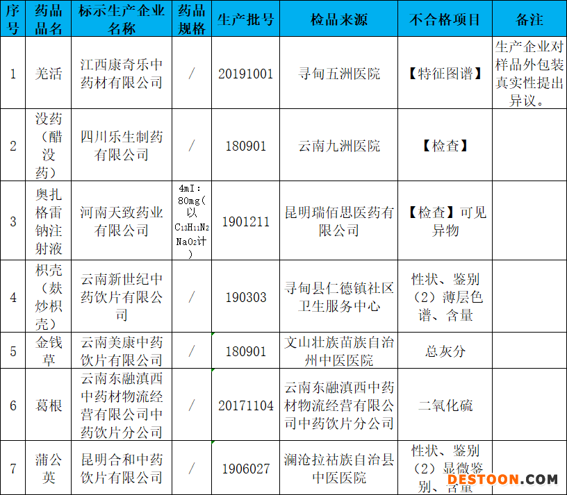 11月30日,云南省藥監(jiān)局2020年第2期不合格藥品質量公告。具體如下: