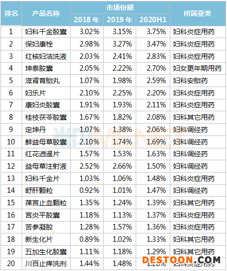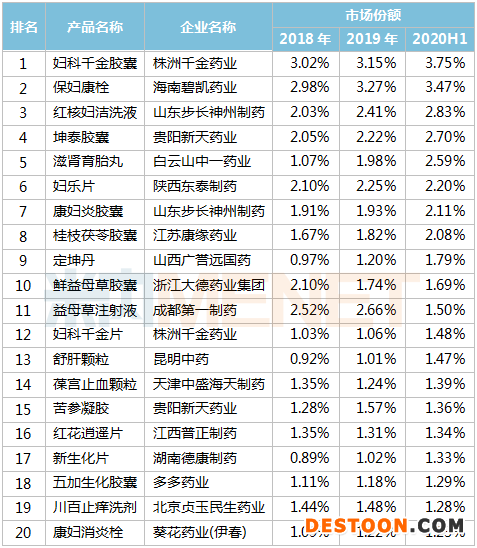 17個(gè)獨(dú)家產(chǎn)品搶占婦科中成藥TOP20!十大品牌上半年銷售過億