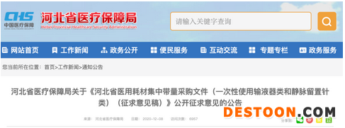12月8日,據(jù)河北省醫(yī)保局消息,《河北省醫(yī)用耗材集中帶量采購文件(一次性使用輸液器類和靜脈留置針類)(征求意見稿)》當(dāng)日發(fā)布,內(nèi)容的核心為進(jìn)一步降低醫(yī)用耗材虛高價格,規(guī)范醫(yī)療服務(wù)行為,保障臨床需求,減輕群眾就醫(yī)負(fù)擔(dān)。