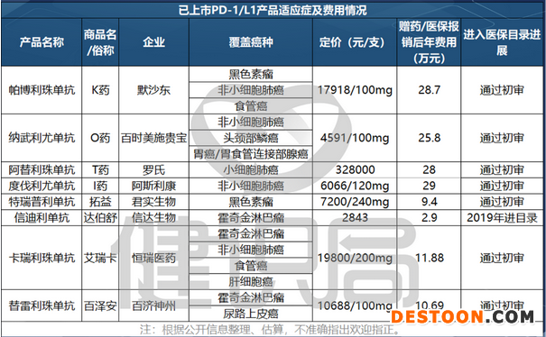 從國家醫(yī)保局9月份發(fā)布的初審名單看,目前除信達的“達伯舒”外的7個已上市PD-1/L1都有志于爭奪市場。