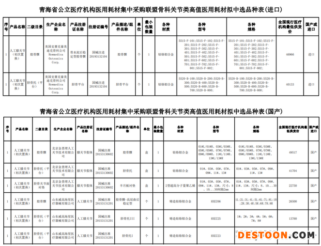 《通知》中,青海省將此前對骨科關(guān)節(jié)類高值耗材集中帶量采購的中選結(jié)果進行了公示。