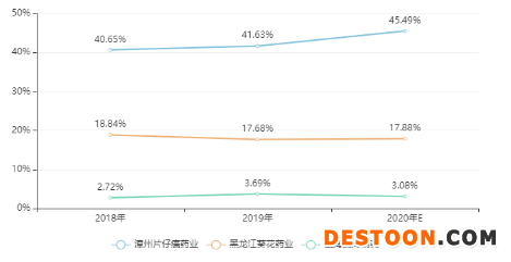 片仔癀的肝炎用藥主要銷售市場在零售藥店,據(jù)米內(nèi)網(wǎng)數(shù)據(jù)顯示,最近幾年片仔癀在中國城市實體藥店中成藥終端肝炎用藥的市場份額屢創(chuàng)新高,預計2020全年能上漲至45.49%,與TOP2、TOP3企業(yè)拉開的差距將更加明顯。