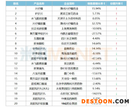 據(jù)2020年全年預測數(shù)據(jù)顯示,片仔癀、片仔癀膠囊、茵膽平肝膠囊三大獨家產(chǎn)品分別位列TOP1、TOP4以及TOP11,片仔癀繼續(xù)以超高的市場份額坐穩(wěn)冠軍品牌寶座,而片仔癀膠囊則從去年的TOP6上漲了2個位次,茵膽平肝膠囊下滑明顯。