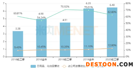 醫(yī)藥仍是片仔癀的主要營收來源,日用品、化妝品業(yè)務占公司總營收比例在10%左右,并有逐年上漲的趨勢;而毛利率方面,從業(yè)務類別來看,日用品、化妝品是片仔癀的第二高毛利產(chǎn)品,2019年前三季度高達70.92%,2020年前三季回落至62.80%的水平。從營業(yè)收入來看,2020前三季已經(jīng)打破了去年全年的業(yè)績,預計今年全年將出現(xiàn)新峰值。