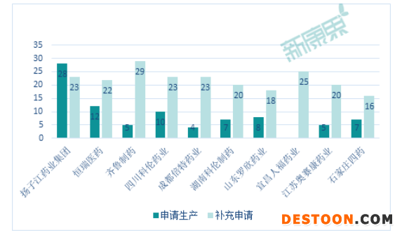 從注射劑一致性評價申報情況來看,申請生產(chǎn)以及補充申請較多的企業(yè)為揚子江藥業(yè)、恒瑞醫(yī)藥、齊魯制藥、四川科倫藥業(yè)等等,既有大型仿制藥生產(chǎn)企業(yè),也有像科倫藥業(yè)這樣專注于注射劑的龍頭。