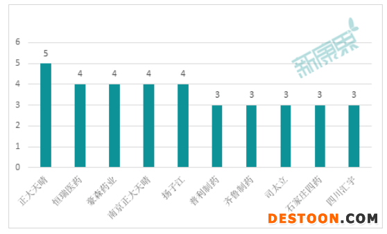 截至12月初,從通過一致性評價的注射劑品種數(shù)量來看,正大天晴和科倫藥業(yè)最多,各有5個;其次為恒瑞醫(yī)藥、豪森藥業(yè)、南京正大天晴、揚子江,各有4個;普利制藥、齊魯制藥、司太立、石家莊四藥、四川匯宇,各有3個。
