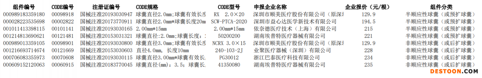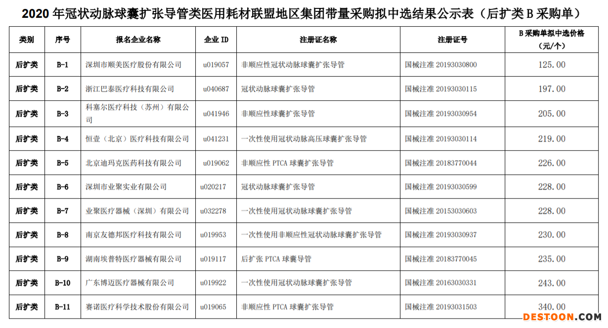 其中深圳市順美醫(yī)療股份有限公司球囊擴張導(dǎo)管擬中選價格為125元;