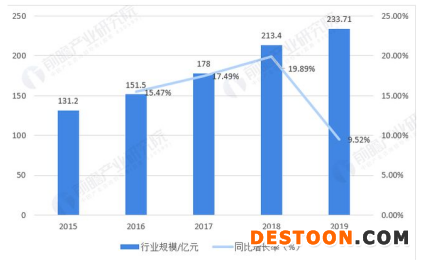 近年來,隨著人們經(jīng)濟生活、文化消費水平的提高以及對口腔健康的認識,我國口腔器械市場規(guī)模呈現(xiàn)不斷增長的趨勢。2019年我國口腔器械市場規(guī)模達233.71億元,較2018年的213.44億元增長9.50%,2015-2019年復合增長率為15.53%。