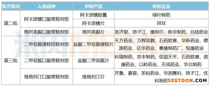 從第二批國采開始,有了降糖藥的身影:第二批中標的產(chǎn)品有阿卡波糖膠囊、阿卡波糖片以及格列美脲片,第三批中標產(chǎn)品有鹽酸二甲雙胍緩釋片、鹽酸二甲雙胍片以及維格列汀片,均為臨床用量較大的非胰島素類降血糖藥。胰島素何時納入國采也是業(yè)界討論的焦點,2020年1月在武漢專項集采中出現(xiàn)了7組胰島素,合計約定采購量為170萬支,業(yè)界預(yù)測最遲2021年底胰島素也會進入全國集采。