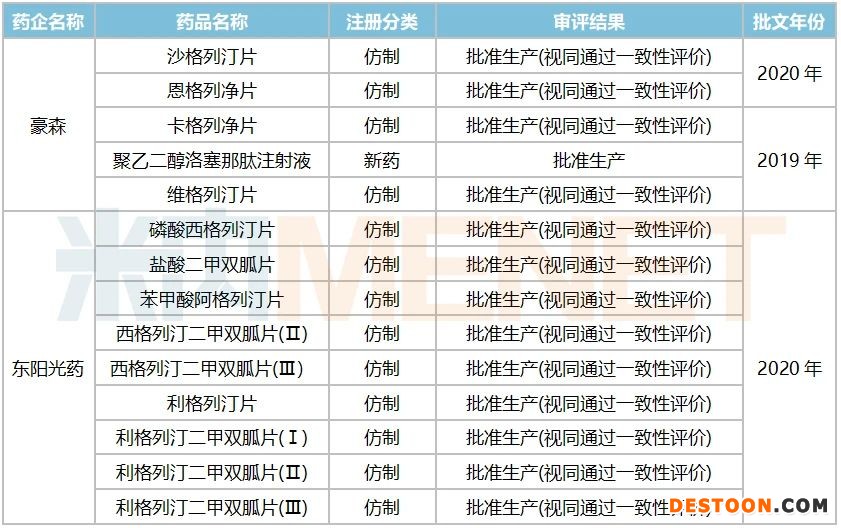 表6:近年來豪森、東陽光藥獲批上市的非胰島素類降糖藥