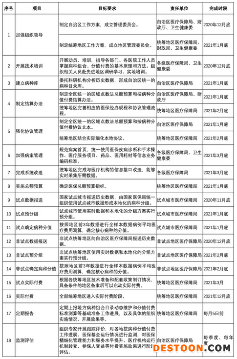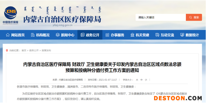 這是內(nèi)蒙古自治區(qū)醫(yī)療保障局1月7日在官網(wǎng)掛出的內(nèi)蒙古自治區(qū)醫(yī)療保障局、財(cái)政廳、衛(wèi)生健康委聯(lián)合發(fā)布的《關(guān)于印發(fā)內(nèi)蒙古自治區(qū)區(qū)域點(diǎn)數(shù)法總額預(yù)算和按病種分值付費(fèi)工作方案的通知》(下稱《通知》)所披露的時(shí)間安排。