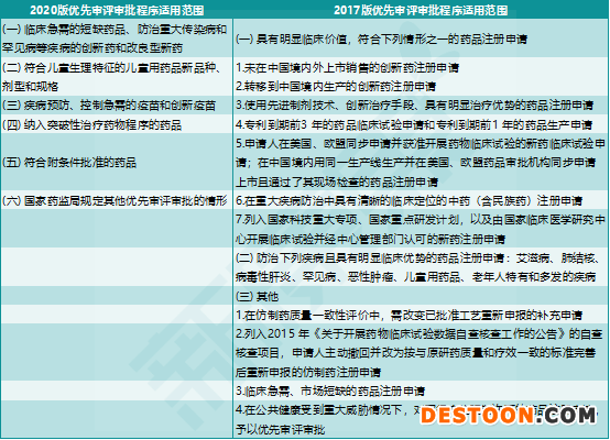 圖表3. 2020年和2017年優(yōu)先審評(píng)審批程序適用范圍